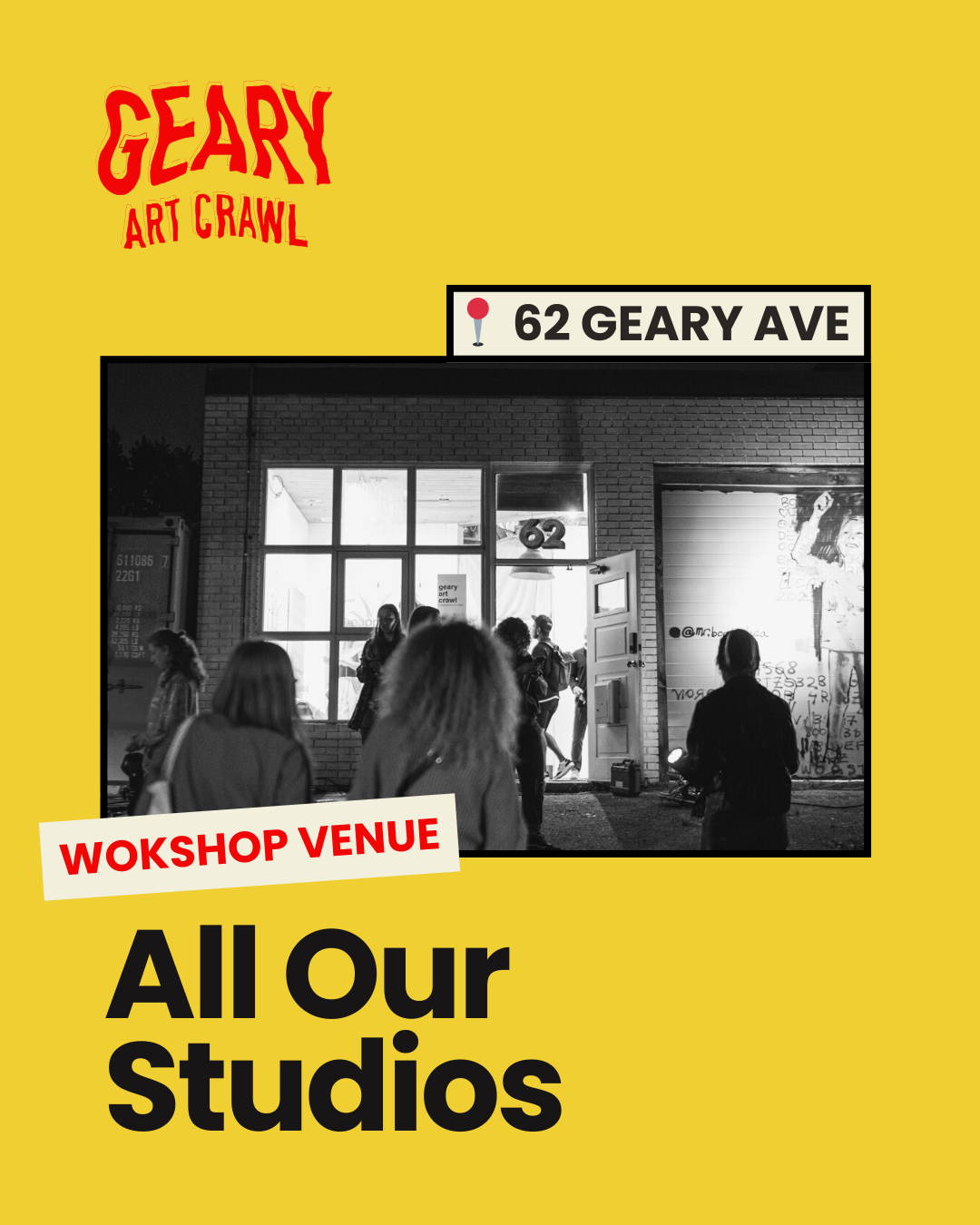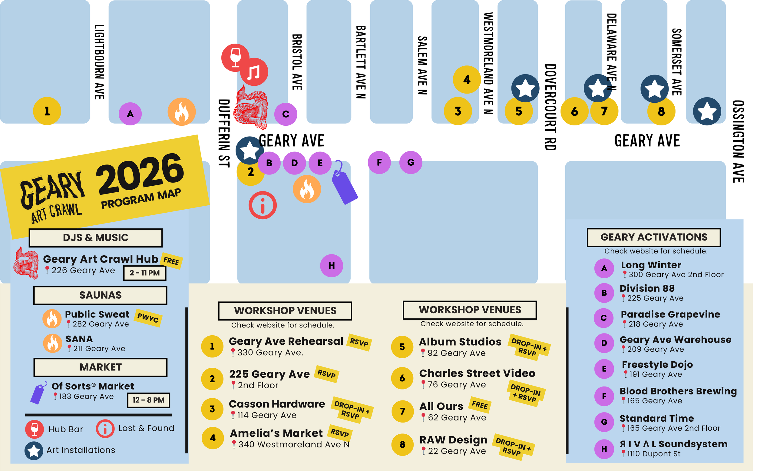 Explore 30+ artist-run, FREE, workshops taking place in venues along Geary Ave. Many workshops are FREE, drop-in and open to all ages. Some require an RSVP with a material fee.